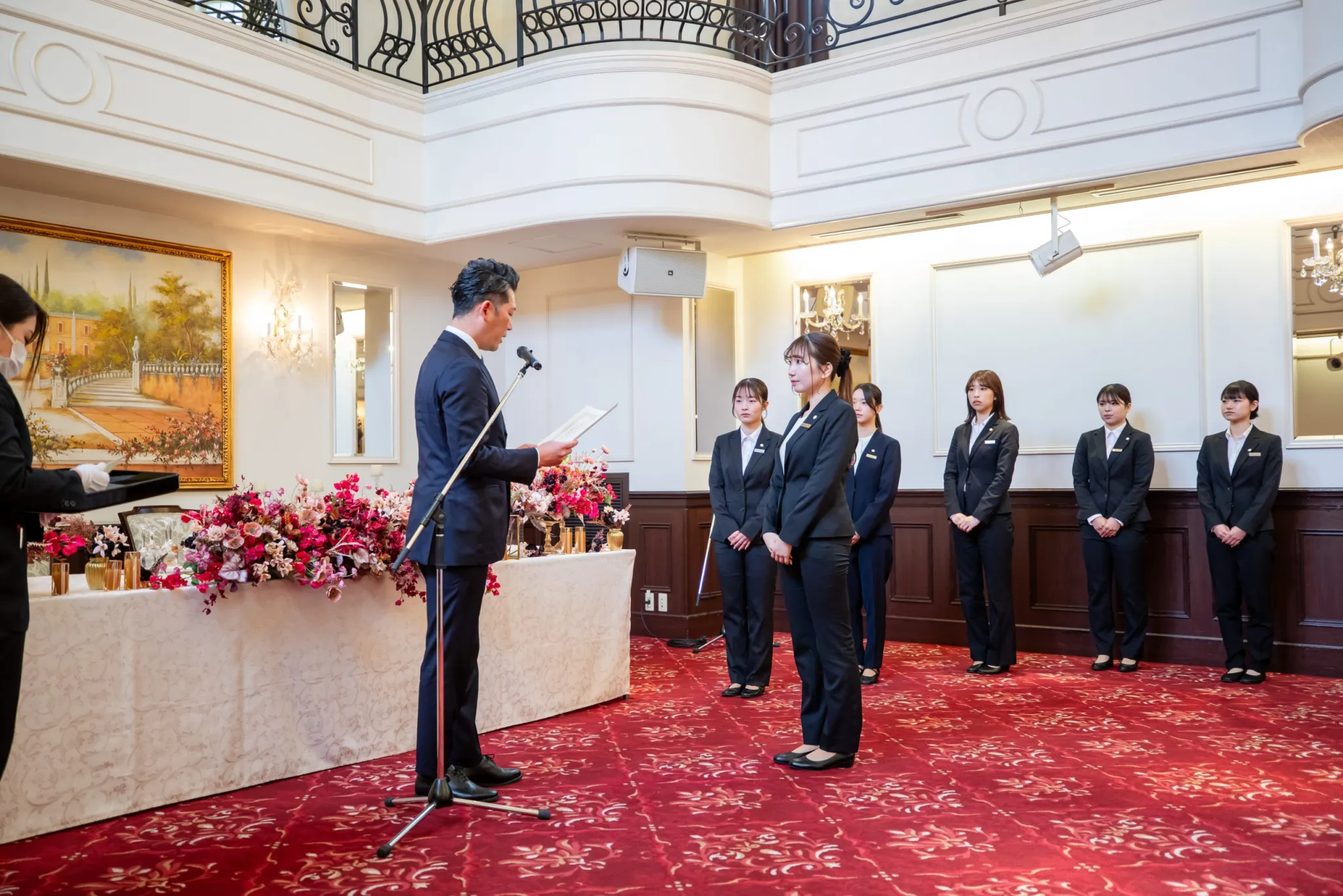 スタイリスト、ウェディングプロデューサー、写真映像など、様々な事業部で活躍いただく新入社員の皆様を迎えることができ、先輩社員やリーダーも心晴れやかな一日を過ごすことができました。