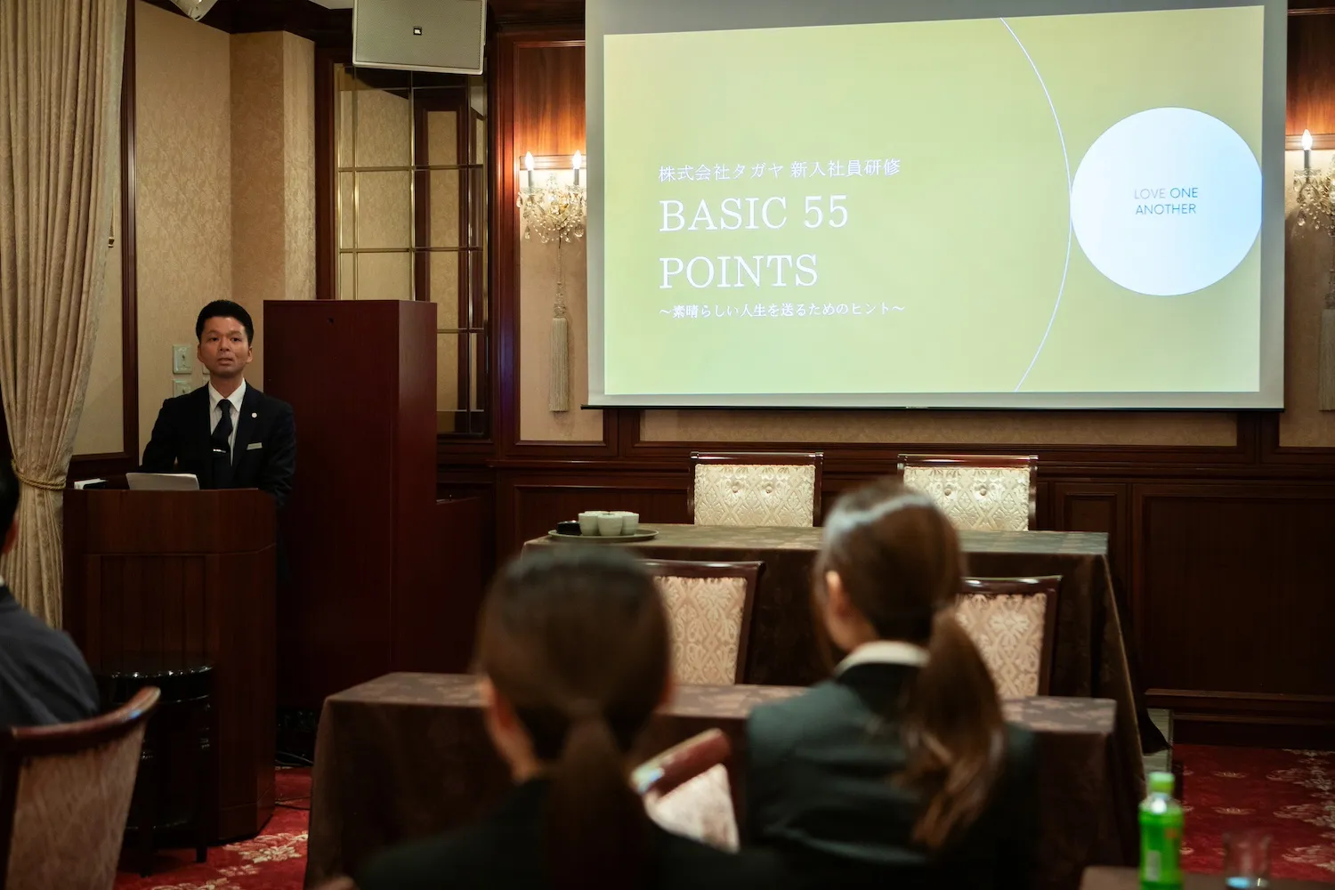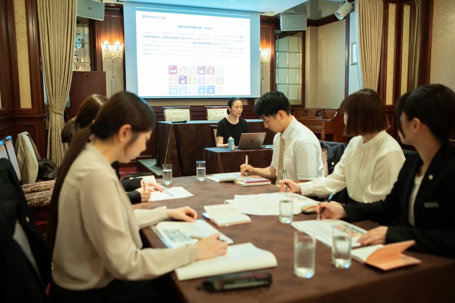 「サステナビリティ・ダイバーシティ」「社員理念・55Points」「ウェディングサービス」と研修テーマを分けて