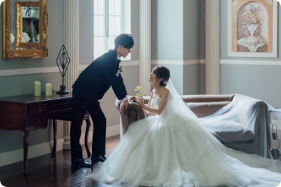 結婚式当日の感動や、おふたりらしさが伝わる瞬間を、撮影クリエーターが丁寧に記録。 前撮りやムービー制作、当日の写真・映像の撮影から編集までをすべて自社で手がけています。 一生の記憶に残るストーリーを、美しく、あたたかくカタチに残します。