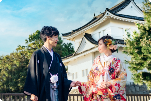 世界遺産・二条城での挙式をはじめ、京都の街並みや文化を生かした和婚フォト&ウェディングをプロデュース。 京都御幸町サロンでは、フォト撮影や体験、食事などの観光サービスも提供しています。歴史と物語が交差する場所で、すべてのお客様に想い出に残る体験をお届けしています。